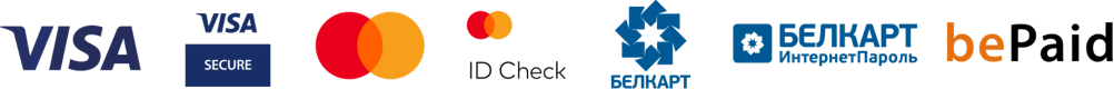 Мы принимаем платежи по следующим банковским картам: Visa, Visa Electron, MasterCard, Maestro, Белкарт.